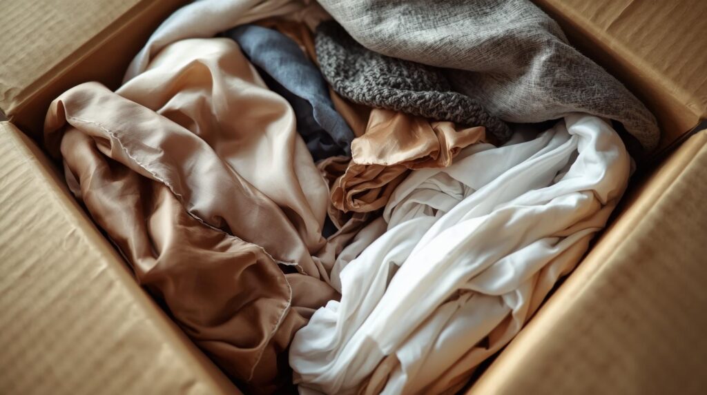 - Cargas pesadas abajo: Empaca los textiles más pesados (alfombras, mantas gruesas, edredones) en el fondo de la caja y lo más ligero (ropa interior, blusas) arriba.