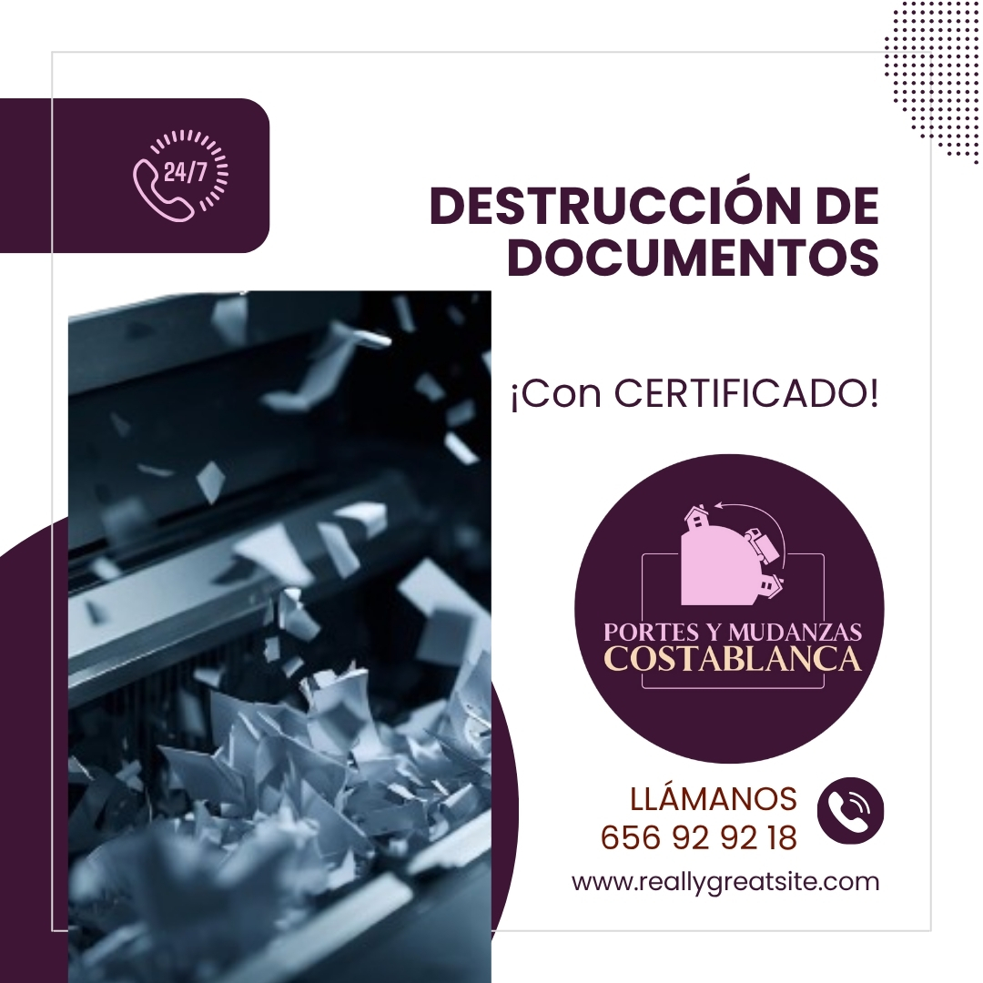 En Portes y Mudanzas Costablanca ofrecemos un servicio de destrucción de documentación confidencial en Alicante, cumpliendo con todas las exigencias legales y garantizando que la información sea eliminada de manera irreversible.