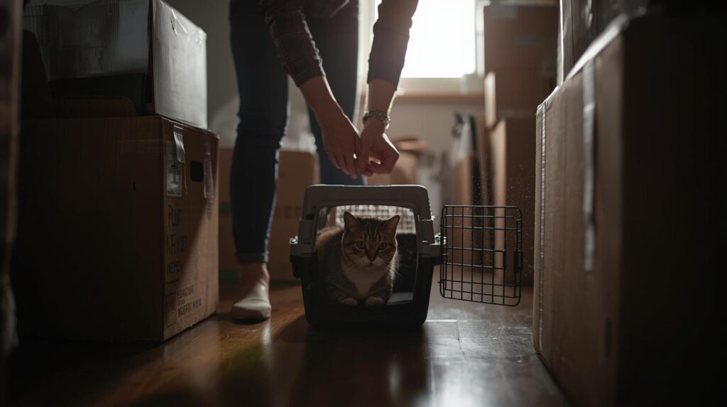 El día de la carga y descarga es caótico: puertas abiertas, extraños entrando y saliendo, ruido fuerte. Es el momento de mayor riesgo para una mascota asustada.